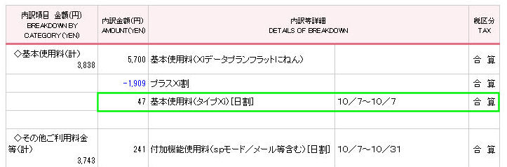 で、ちょっと特殊契約って事で手続き上「タイプXi」の基本料が1日分(緑枠部分)日割りで付いてます(爆)