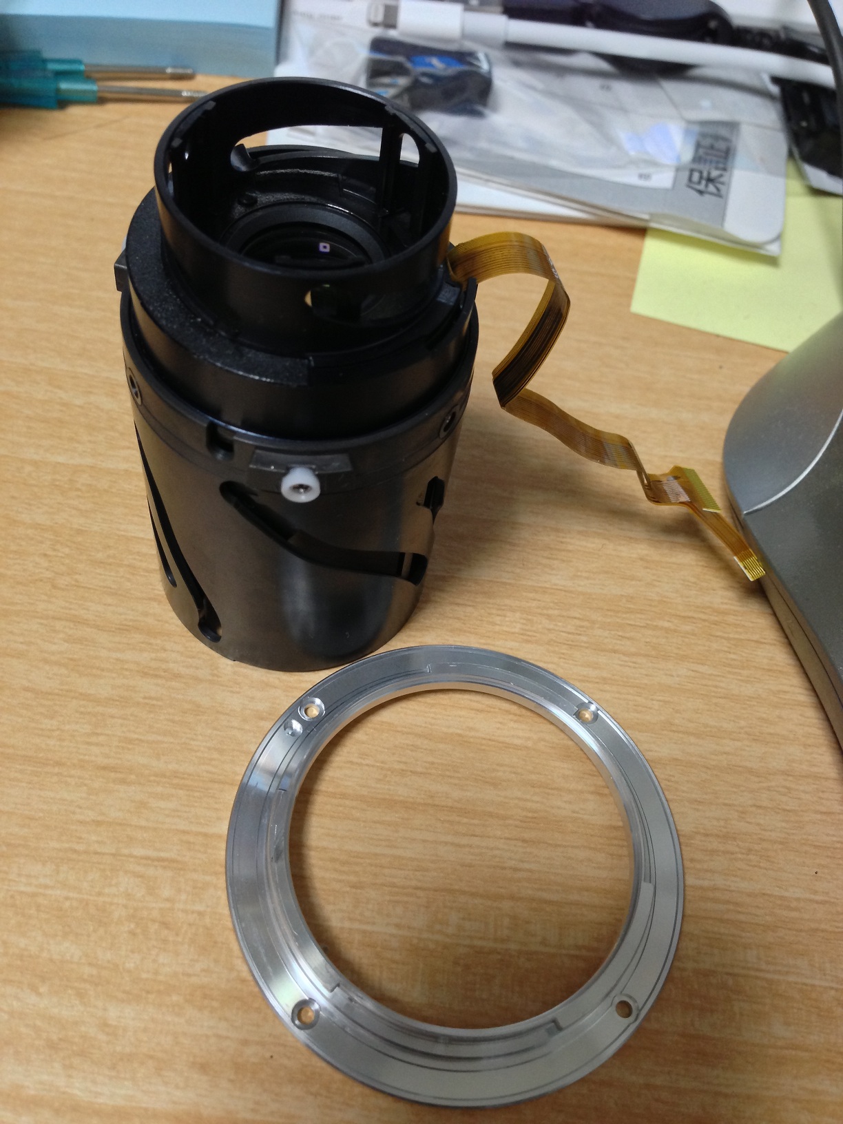 ASSYに組み付けられてるレンズに割れたレンズキャップが当たって傷がついてたのだろう
