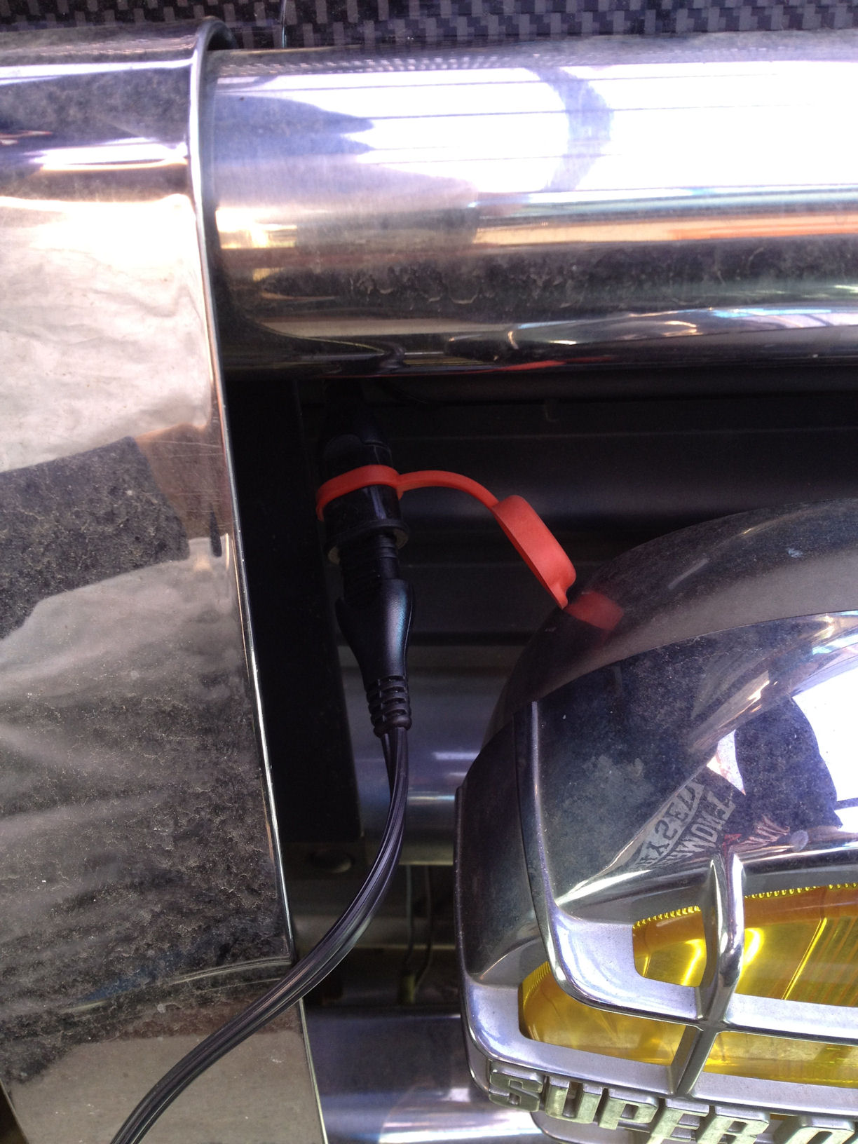 Optimate6の接続用端子はフロントガーニッシュから取り出し