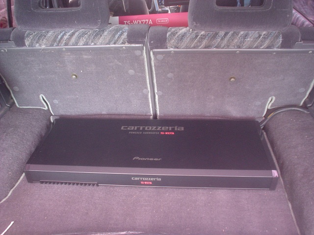 今までチェンジャーがあったスペースが空いたので縦置きしているウーファーの向きを前(進行方向)に向けました