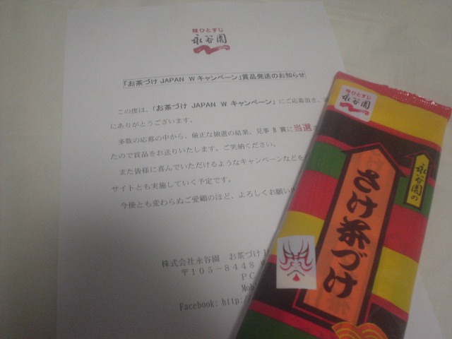 永谷園のお茶漬けが当たりました