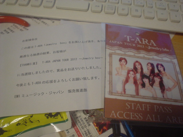 T-ARA日本ツアー2012のコンサートバックステージパスが・・・当たってた(爆)
