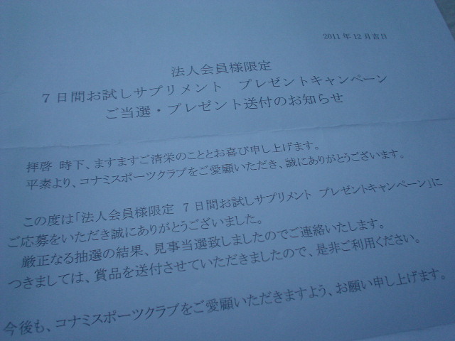 コナミスポーツから荷物が・・・