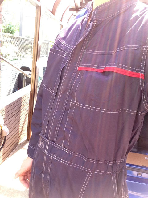 私服での作業は色々引っかけたりするので自前のつなぎです