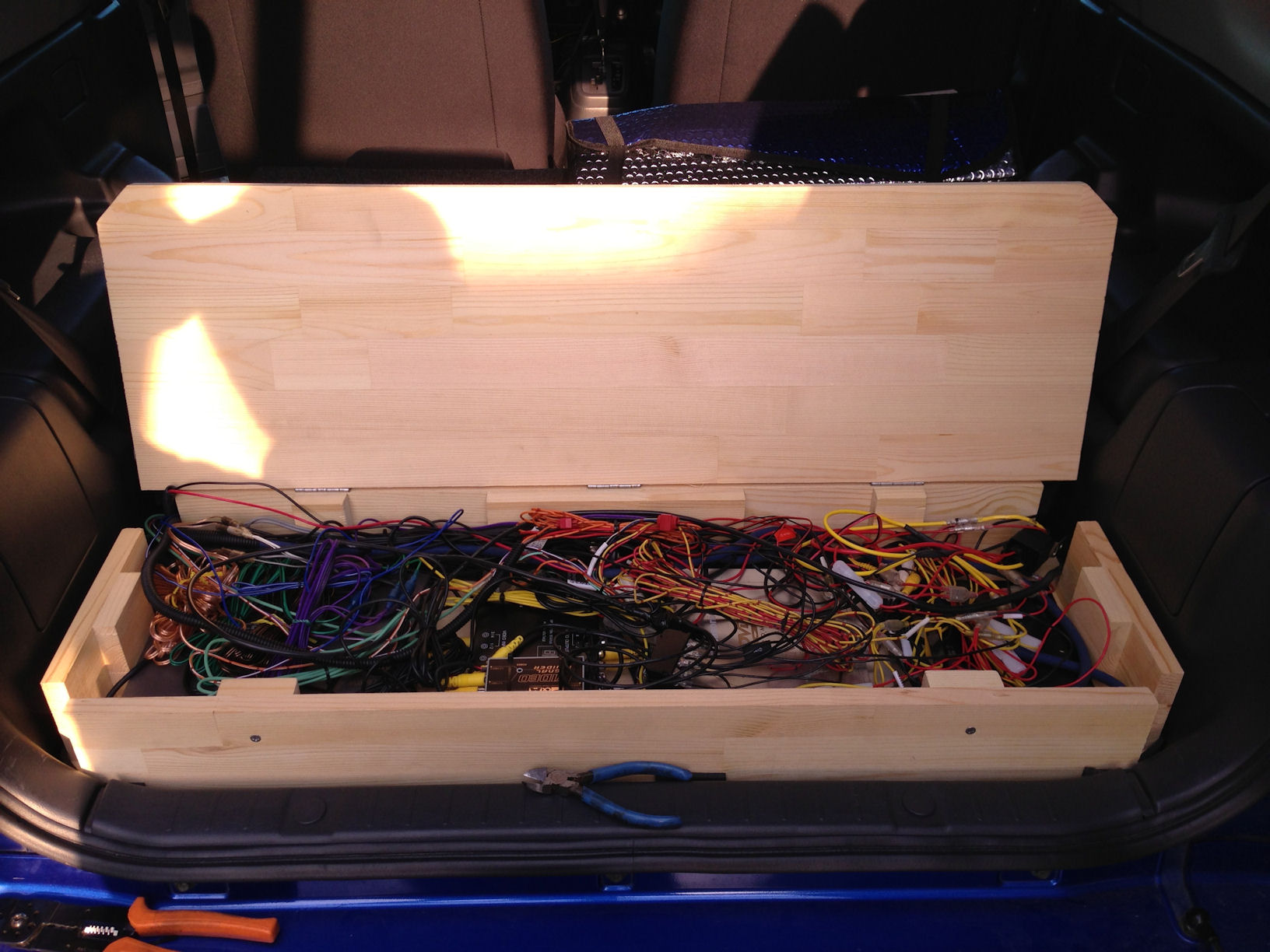 バッテリーから電源をリヤのトランクまで伸ばすのでバッ直の線も敷設