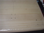 まずはさくっと穴開け位置のマーキング(板はビニールパッケージされてるのでパッケージ上に書いてます)。