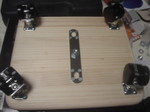 キャスター取り付け用の下穴とアーム取り付け部の貫通穴、そして補強板取り付け用の下穴。